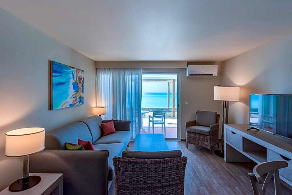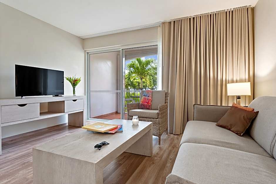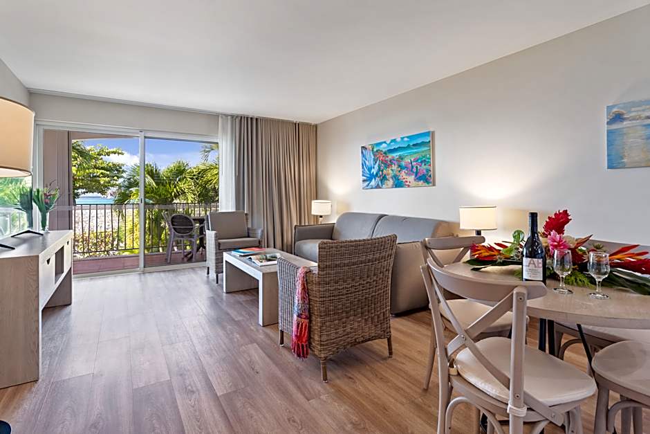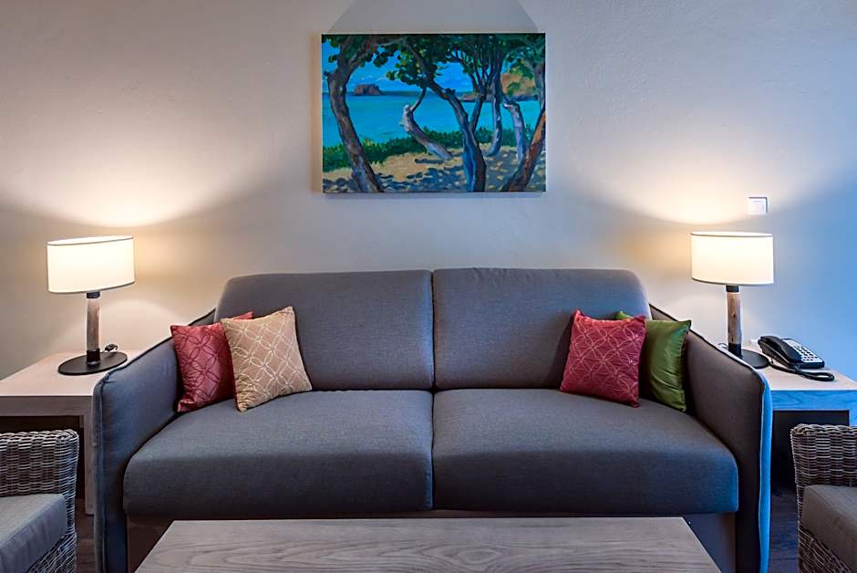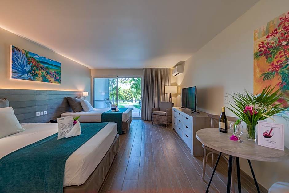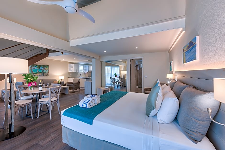 Dining is a breeze with The Sunset Café on site, serving Caribbean, French, and seafood dishes in a family-friendly setting. A bar keeps cravings in check, and room service is available for those in-the-moment cravings. When it’s time to unwind, beach umbrellas and loungers are free, and garden or patio spaces provide shaded spots for a laid-back meal or a quiet moment with a book.
