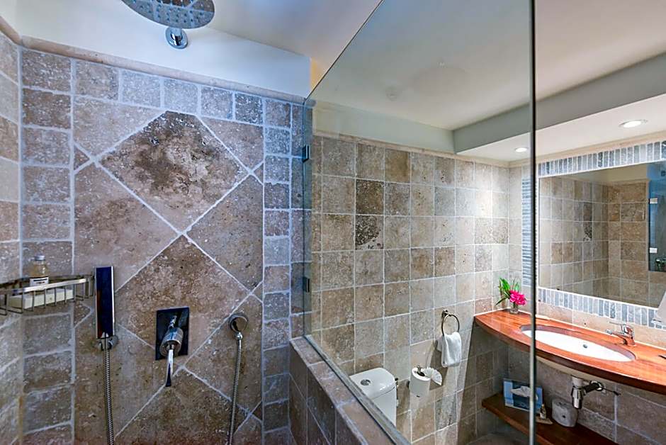These studios feature a view of the tropical foliage of our verdant gardens. One king size bed or two double beds are available and custom-designed furniture in colorful-tropical styles. Studio rooms accommodate 2 adults. This room cannot accomodate extra beds. Bed type can be requested but not guaranteed.